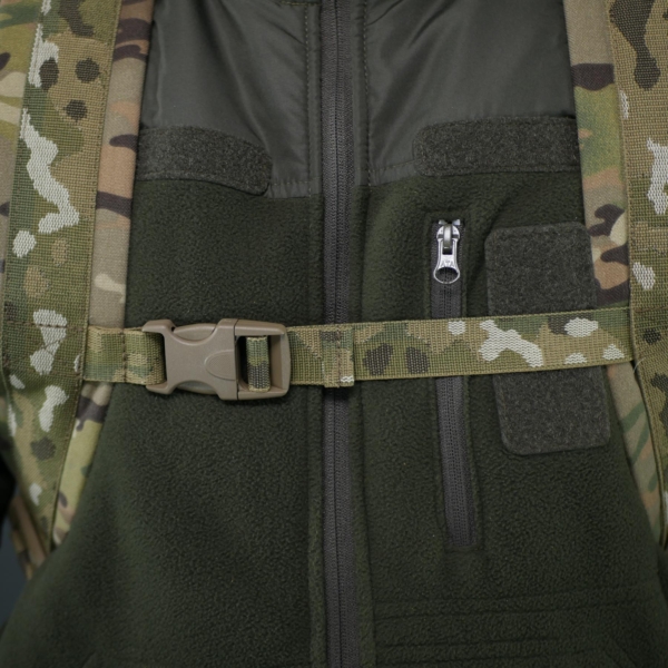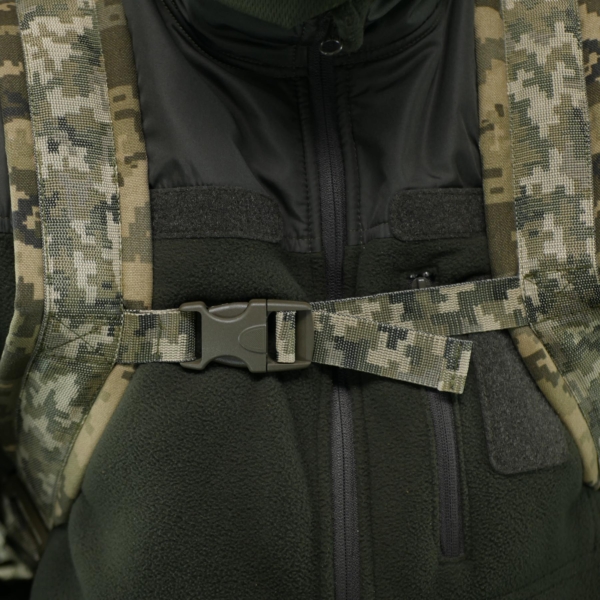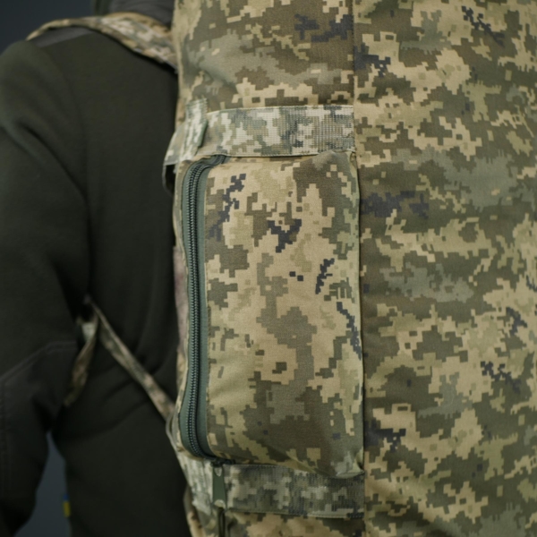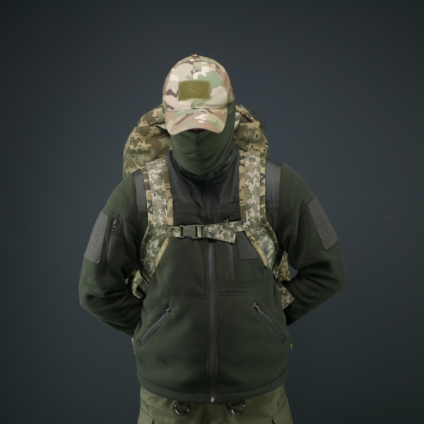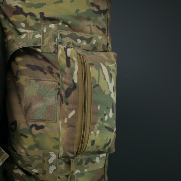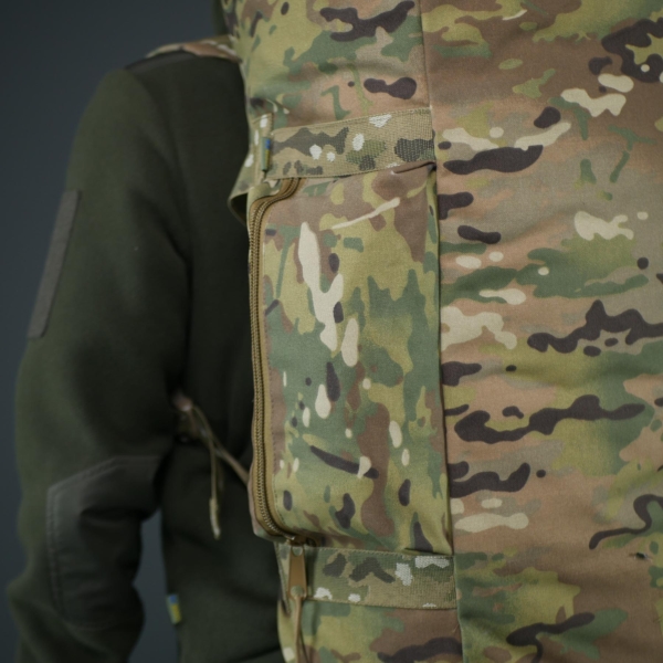 - Додаткові три зовнішні кишені: дві бокові та одна фронтальна для дрібного спорядження.