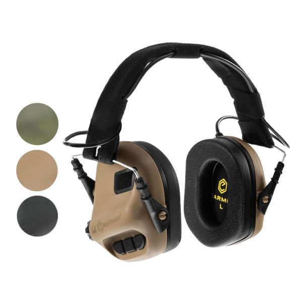 Конструкція має низькопрофільні амбушюри, які не заважають при прицілюванні, м’яке наголов’я для зручності та телескопічні дужки, що забезпечують надійну індивідуальну посадку. Навушники складаються, що робить їх компактними для транспортування та зберігання.