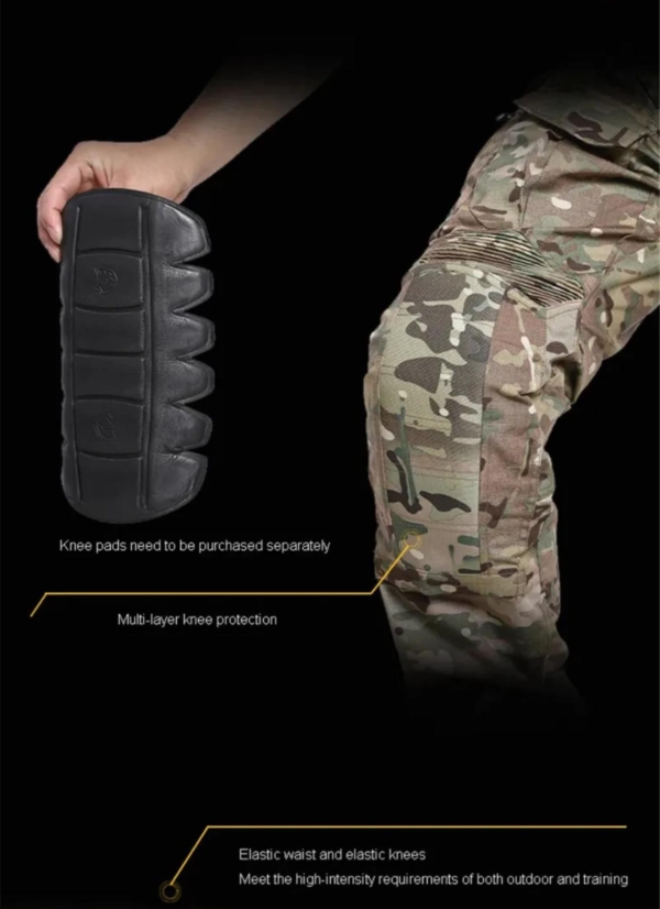 Посилена зона колін — спеціальні кишені дозволяють встановити додаткові захисні вставки (за потреби), що підвищує комфорт при інтенсивних рухах.