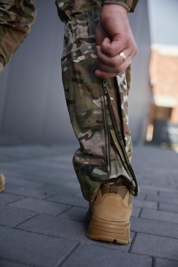 •Усі кишені на ґудзиках, затяжка коліна виконана під кожним коліном на манжетах з липучками, додатково ззаду присутня резинка нижче зони коліна.