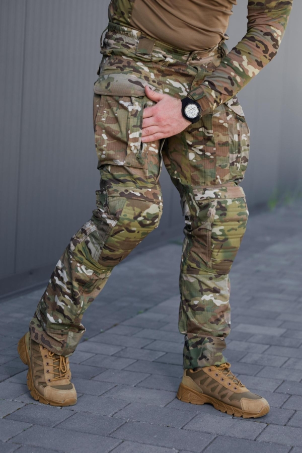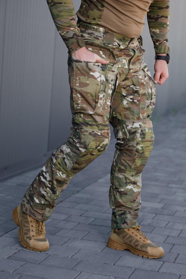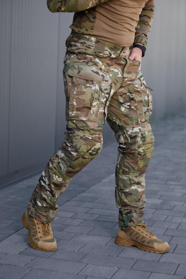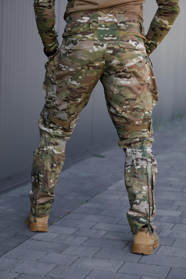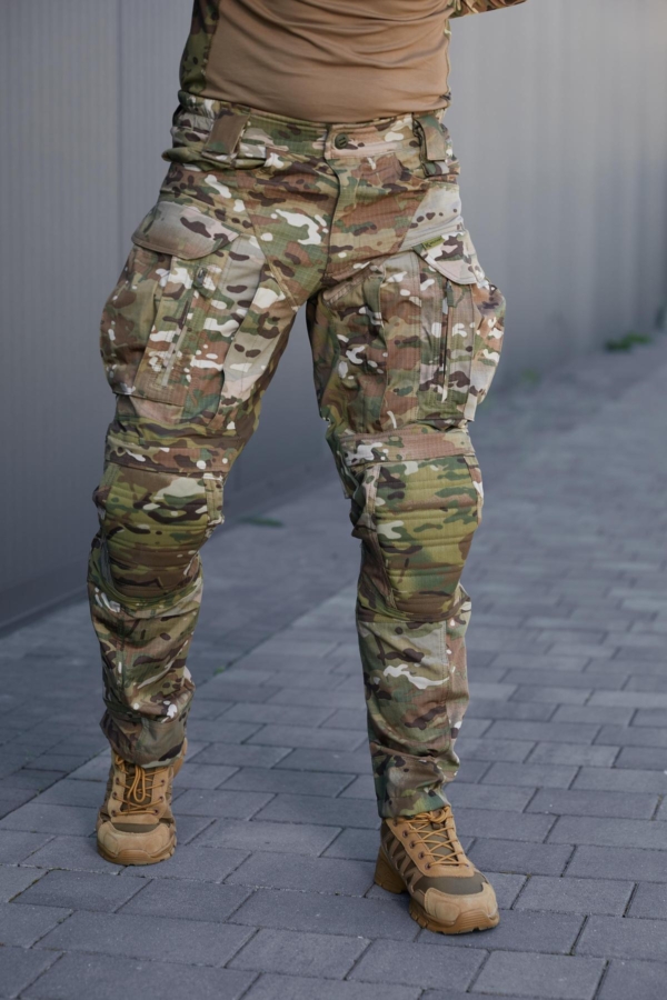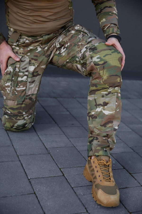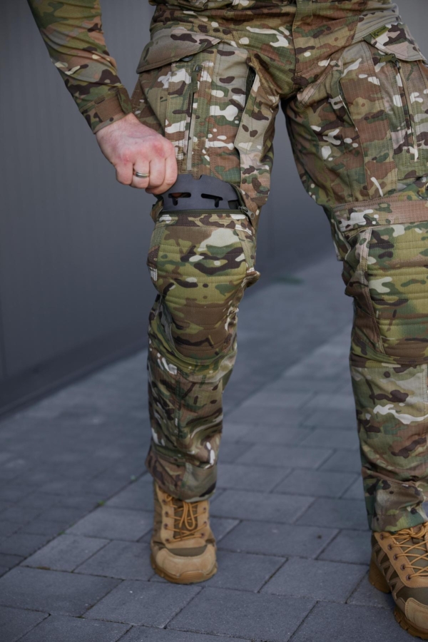 •Коліна виконані з cordura 500d стрейч тканина під коліном всередині коліна стрейч тканина, сітка для вентиляції у внутрішній зоні бедра з обох сторін, кріпленя наколіника (для загнутого положення, та к кишеня під наколінник з EVA піни або на Ваш вибір ;