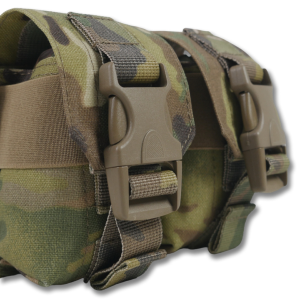 Кріплення реалізоване через систему MOLLE, що дозволяє інтегрувати підсумок із різними елементами спорядження.