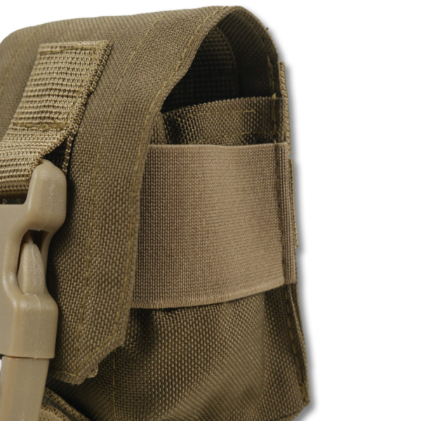 Кріплення здійснюється за системою MOLLE, що дозволяє інтегрувати підсумок із більшістю сучасних платформ спорядження.