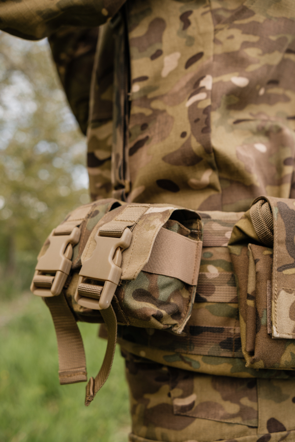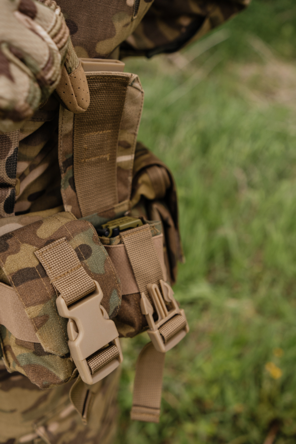 Кріплення здійснюється за системою MOLLE, що робить підсумок сумісним із більшістю сучасних платформ спорядження.