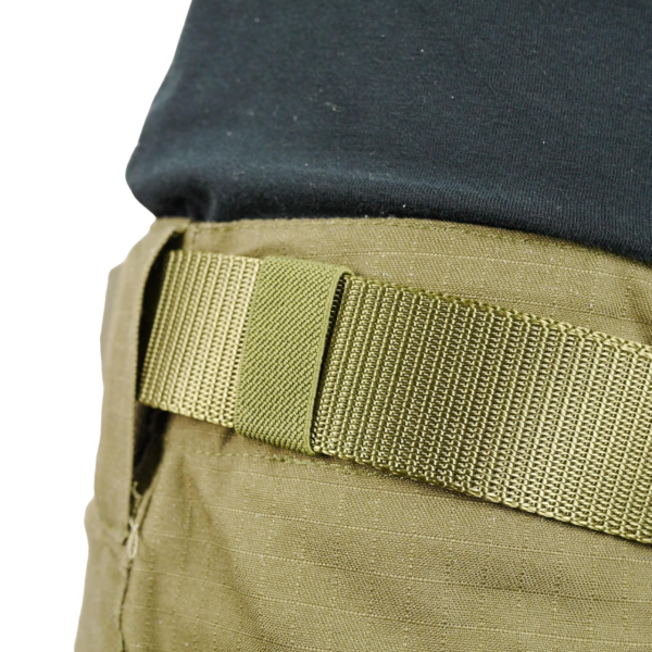 Міцний та зручний ремінь для штанів, виготовлений з еластичної текстильної стропи з нейлону класу «Люкс» шириною 38 мм. Завдяки спеціальному плетінню «Павутина» стропа відзначається високою щільністю та стійкістю до розривів, зберігає первинний вигляд протягом тривалого часу, витримує значні навантаження та стійка до механічних пошкоджень.