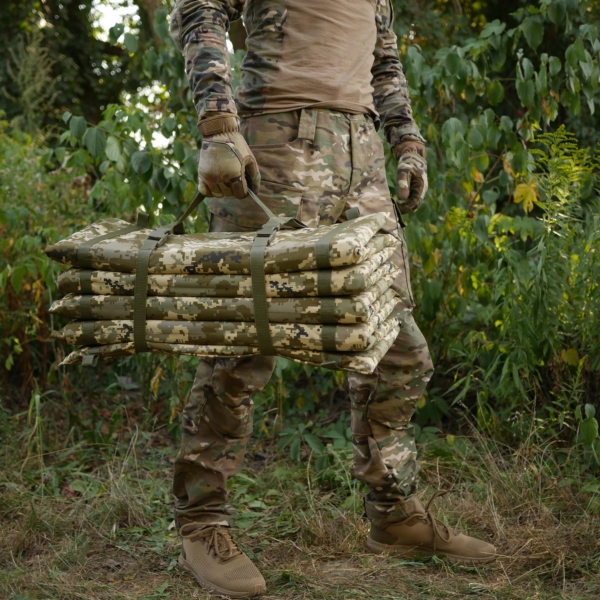 Каремат стійкий до вологи, зберігає тепло під час сидіння або лежання на снігу, холодній землі чи вологих поверхнях. Підходить для тривалого використання в польових умовах, туризмі, відпочинку на природі та щоденного активного застосування.