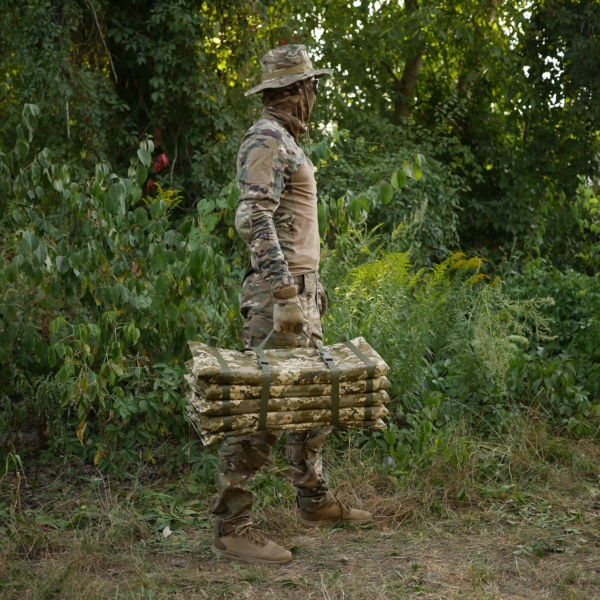 Тактичний розкладний каремат Kiborg K-2 (посилений, 20 мм + стропа) забезпечує комфорт і надійну термоізоляцію навіть у складних умовах. Виготовлений із зносостійкої водовідштовхувальної тканини Oxford 600D з наповнювачем Поліфом товщиною 20 мм.