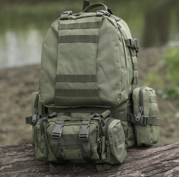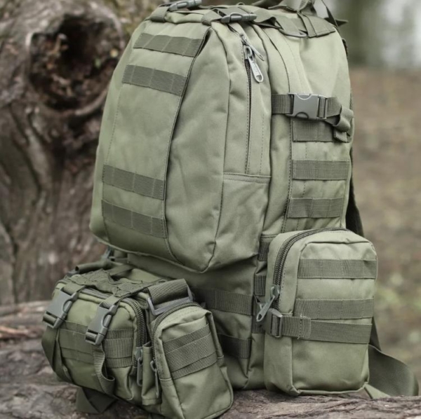 Тактичний рюкзак Molle Assault 55 L з трьома знімними органайзерами — містке та функціональне рішення для походів, тренувань і повсякденного використання. Виготовлений із водонепроникного матеріалу Oxford 800D, він стійкий до зношення та захищає вміст від вологи.