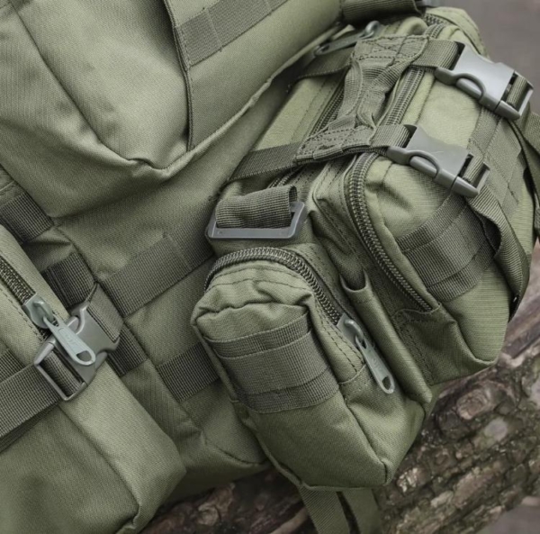 Завдяки системі MOLLE рюкзак можна доповнювати додатковими підсумками та аксесуарами, а знімні органайзери полегшують організацію спорядження.
