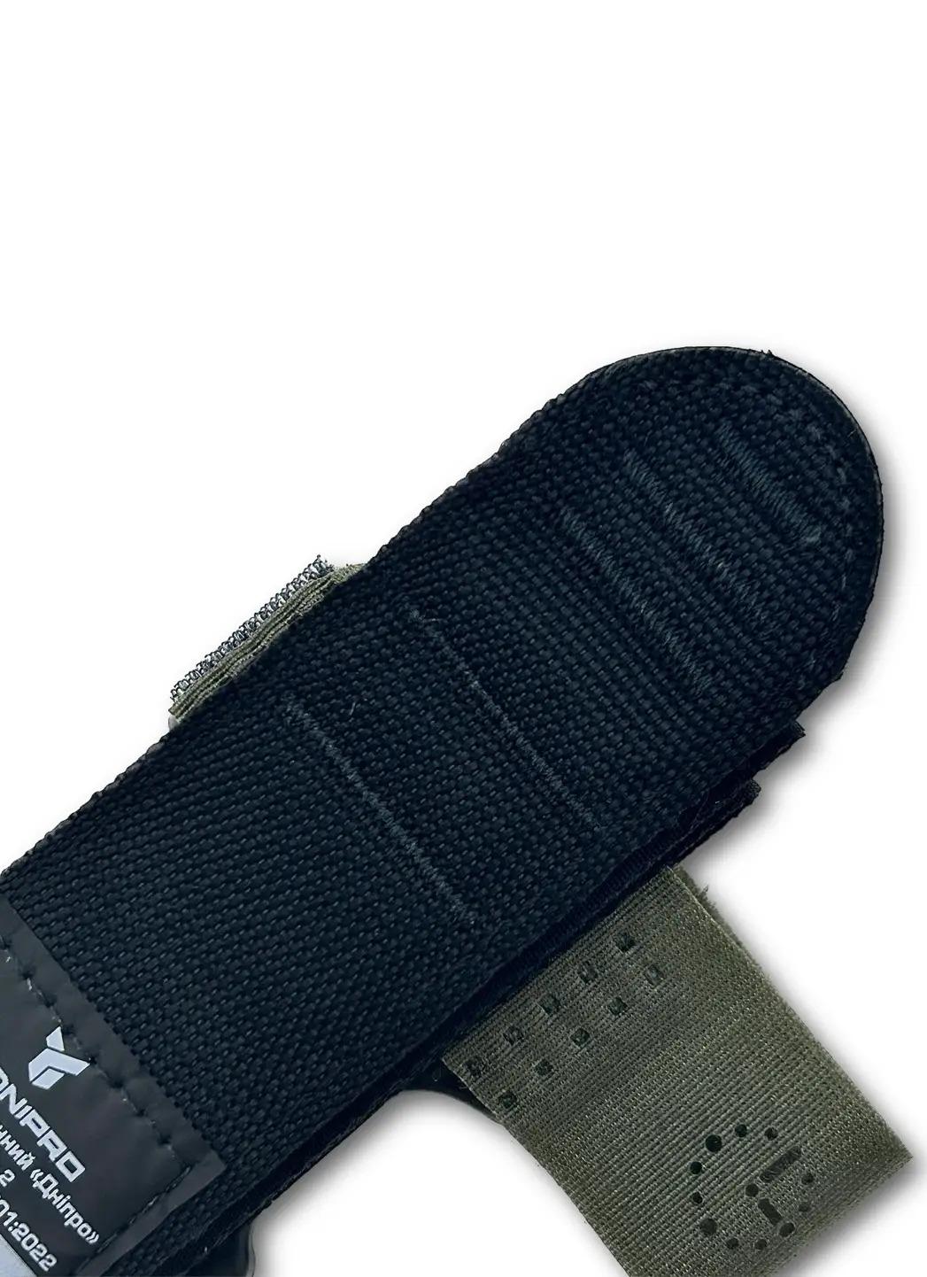 • Липучка-фіксатор, яка дозволяє накладати турнікет на широкий діапазон типорозмірів кінцівок та надійно зафіксувати стропу в необхідному стані (текстильна застібка з синтетичного волокна);