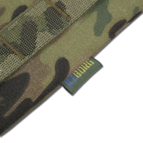 Чохол для захисту попереку під балістичний пакет Kiborg виготовлений із Cordura 1000D з NIR-просоченням, що робить його менш помітним у приладах нічного бачення. Матеріал має подвійне поліуретанове покриття, яке захищає від вологи та мастильних речовин, не підтримує горіння, стійкий до стирання й вигорання. Використана стропа зі 100% поліаміду також не горить.