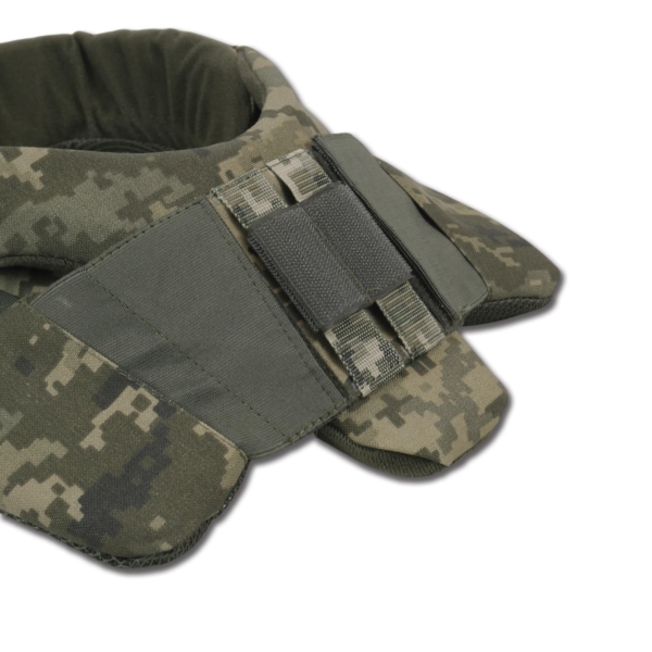 Модель призначена для повноцінного захисту передньої, бічної та задньої частин шиї, з інтеграцією до основного спорядження. Оптимальне поєднання зручності, знімності та захисних властивостей.