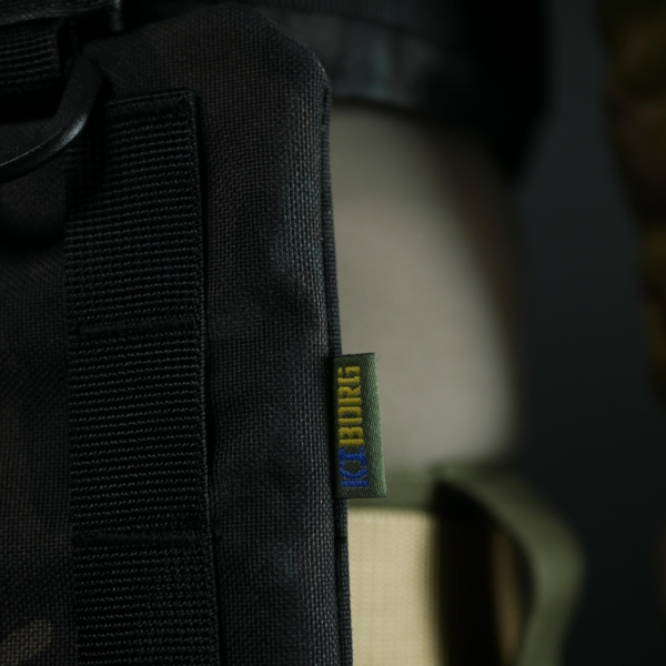 Чохол для захисту живота Kiborg під балістичний пакет виготовлений із Cordura 1000D з NIR-просоченням, що робить його менш помітним у приладах нічного бачення. Матеріал має подвійне поліуретанове покриття, яке захищає від вологи та мастильних речовин, не підтримує горіння, не стирається та не вигорає на сонці. Використана стропа зі 100% поліаміду також не горить.