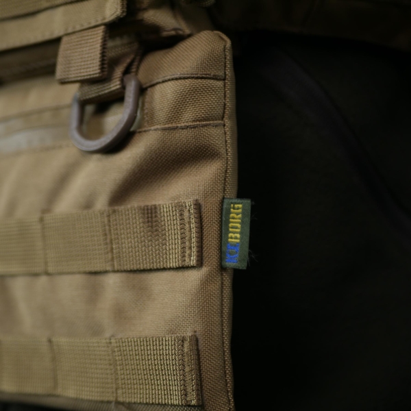 Чохол для захисту живота Kiborg під балістичний пакет виготовлений із Cordura 1000D з NIR-просоченням, що робить його менш помітним у приладах нічного бачення. Матеріал має подвійне поліуретанове покриття, яке захищає від вологи та мастильних речовин, не підтримує горіння, не вигорає на сонці та стійке до стирання. Використана 100% поліамідна стропа також є вогнестійкою.