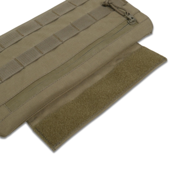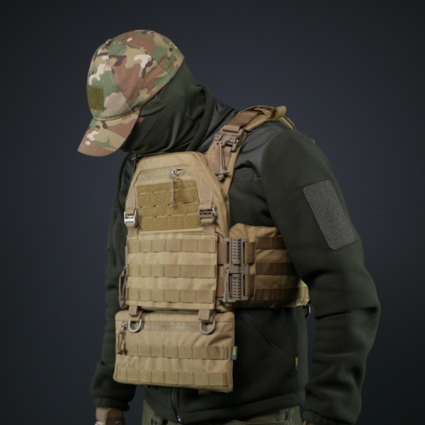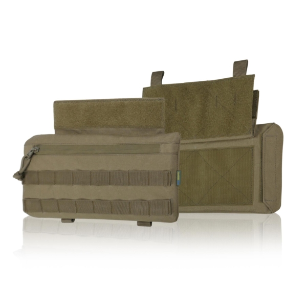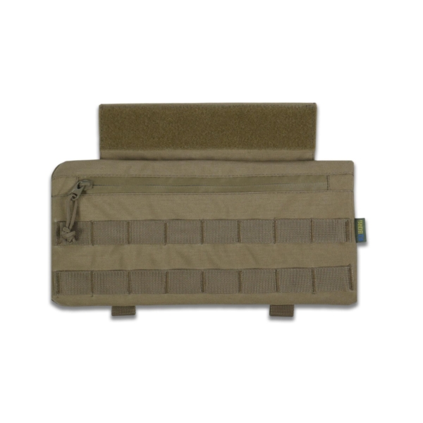 Додатково на фронтальній частині розташовані два ряди MOLLE та карман із прорезиненим бігунком для карт, документів чи дрібних речей. Тильна сторона оснащена системою MOLLE, що дозволяє інтегрувати чохол із напашником Militex, утворюючи єдиний захисний модуль.