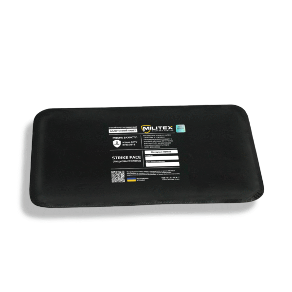 Чохол ідеально сумісний із балістичними пакетами Militex. Пакет 2 класу захисту витримує постріл кулею 7,62×25 мм (пістолет ТТ), що підтверджено випробуваннями згідно з ДСТУ 8782:2018.