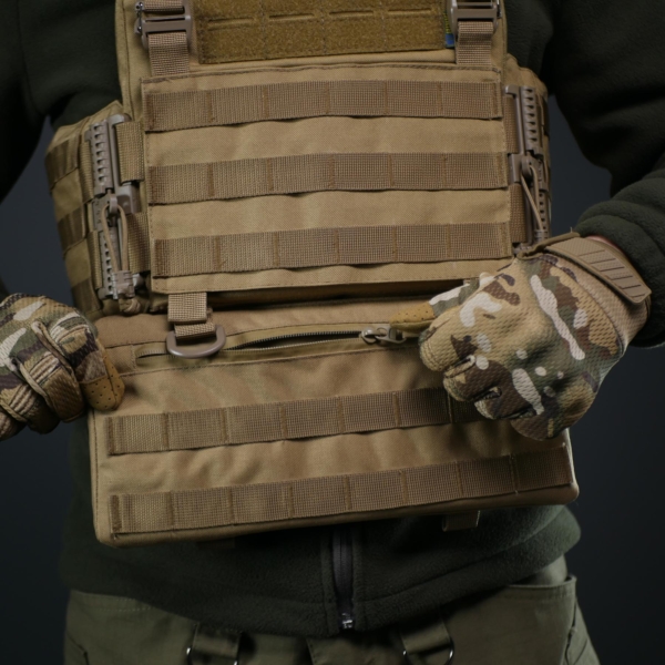 На фронтальній частині розташовано два ряди MOLLE та карман із прорезиненим бігунком для карт, документів чи дрібних речей. Тильна сторона обладнана системою MOLLE, яка дозволяє створити абдомінально-напашний модуль разом із напашником Militex.
