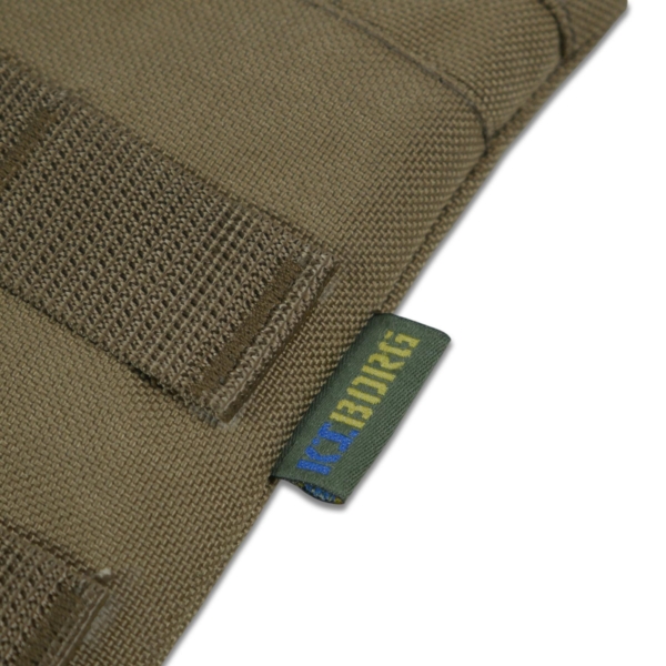 Чохол для захисту живота Kiborg під балістичний пакет пошитий із Cordura 1000D з NIR-просоченням, що робить його менш помітним у приладах нічного бачення. Подвійне поліуретанове покриття забезпечує захист від вологи та мастильних матеріалів, тканина не підтримує горіння, не вигорає на сонці та не стирається. Використана поліамідна стропа також є вогнестійкою.
