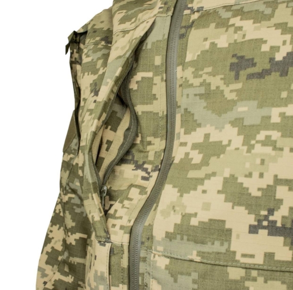 - Зовнішня частина: Виготовлена з міцної тканини ріп-стоп з водонепроникним покриттям, що забезпечує надійний захист від вологи та вітру.