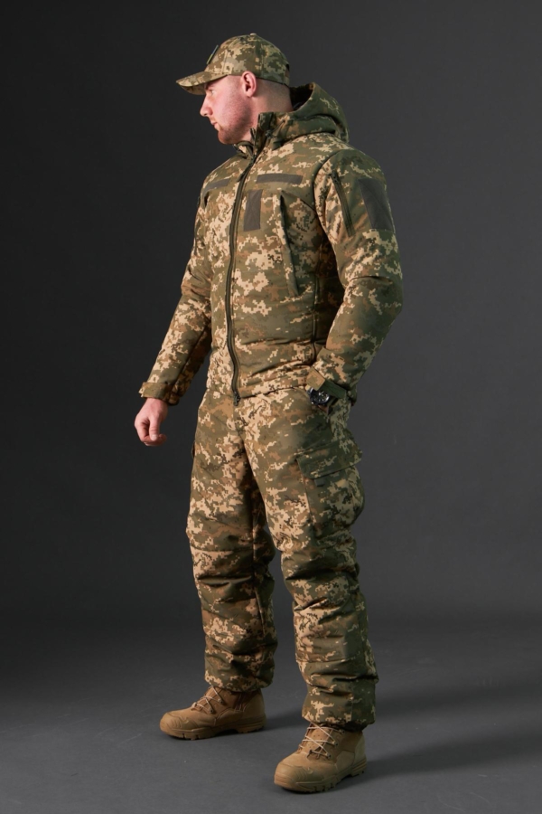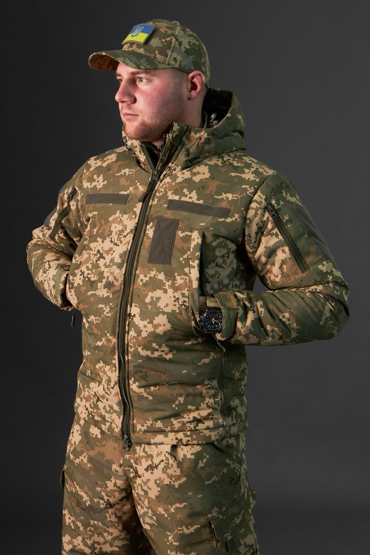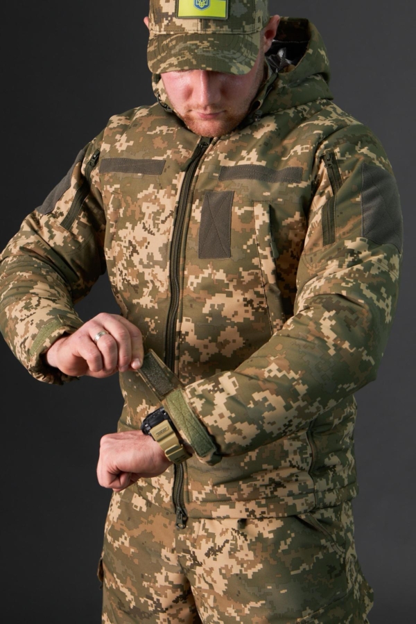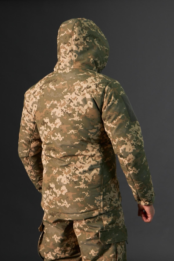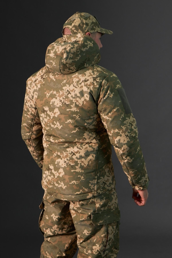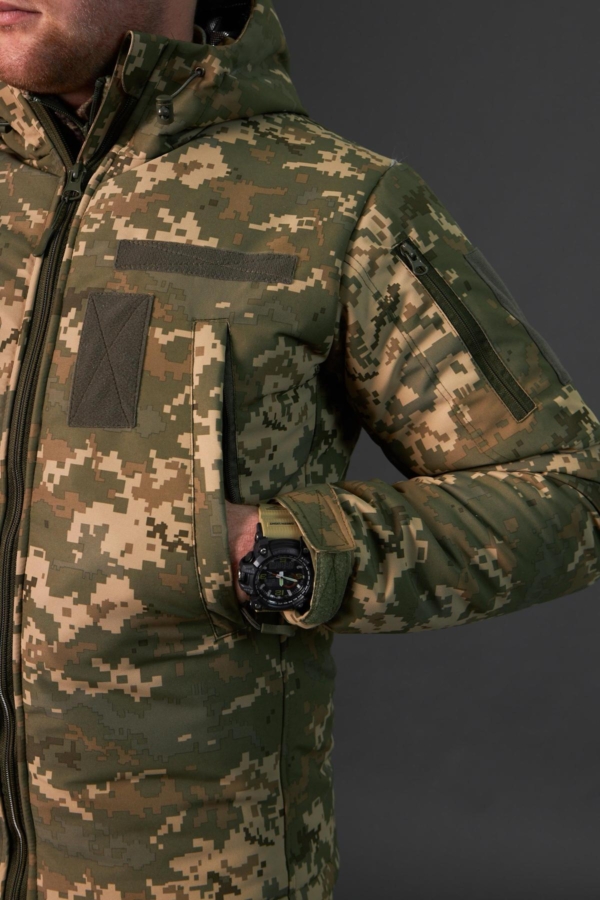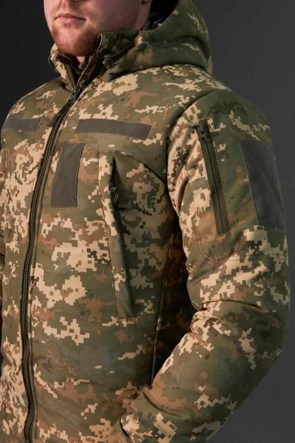 •Зовнішня куртки виконана з тканини Taslan, зубка тканина, не промокає та не продувається, також не вигорає, дуже зносостійка.