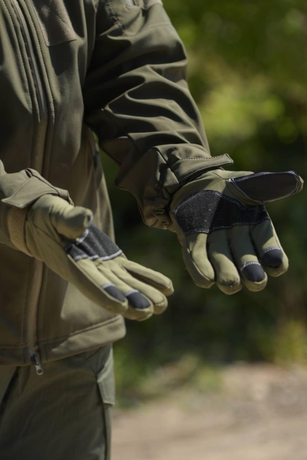 Функціональні рукавички для холодної пори року. Виготовлені з мембранного матеріалу Softshell з теплою мікрофлісовою підкладкою, вони забезпечують захист від холоду та вологи, зберігаючи чутливість рук.