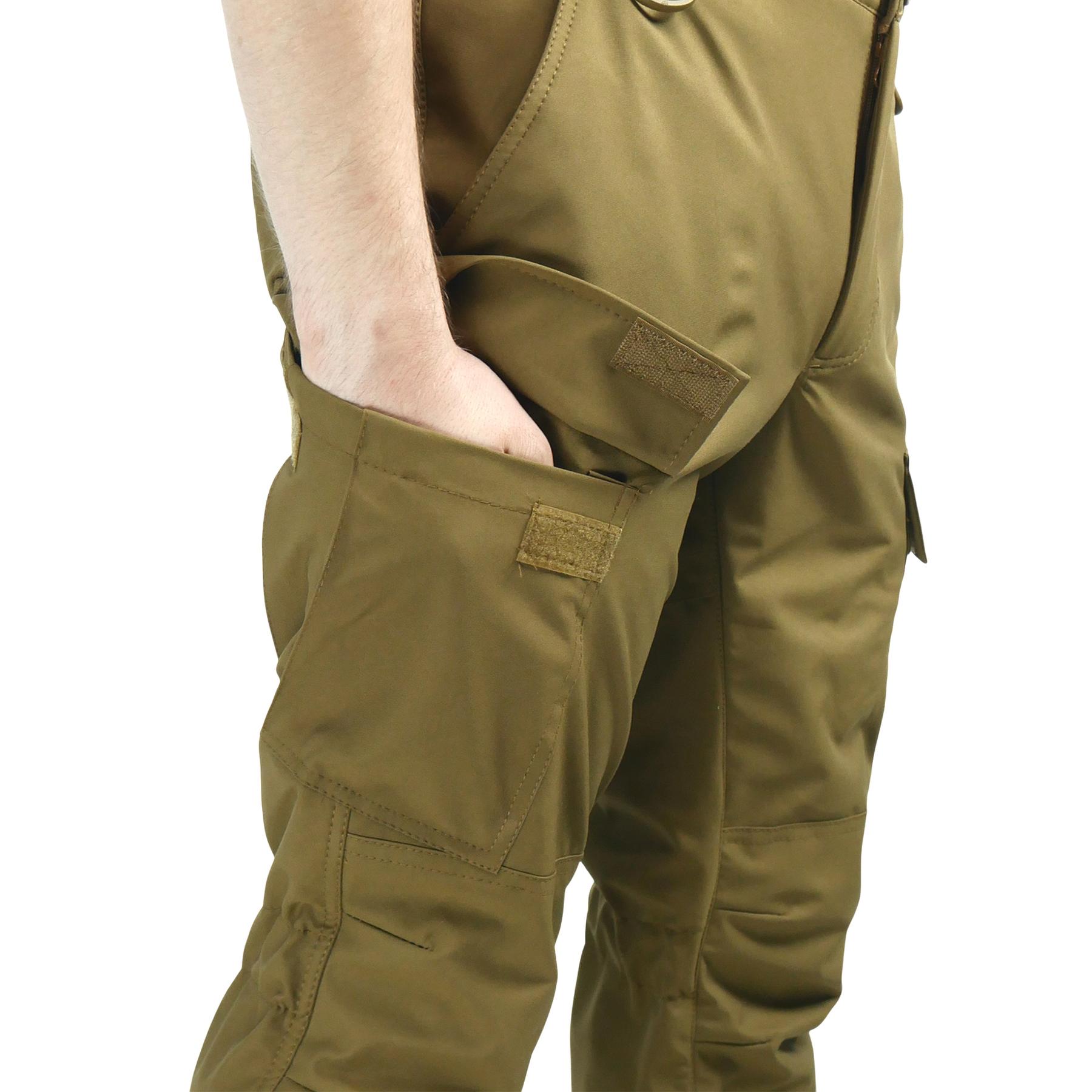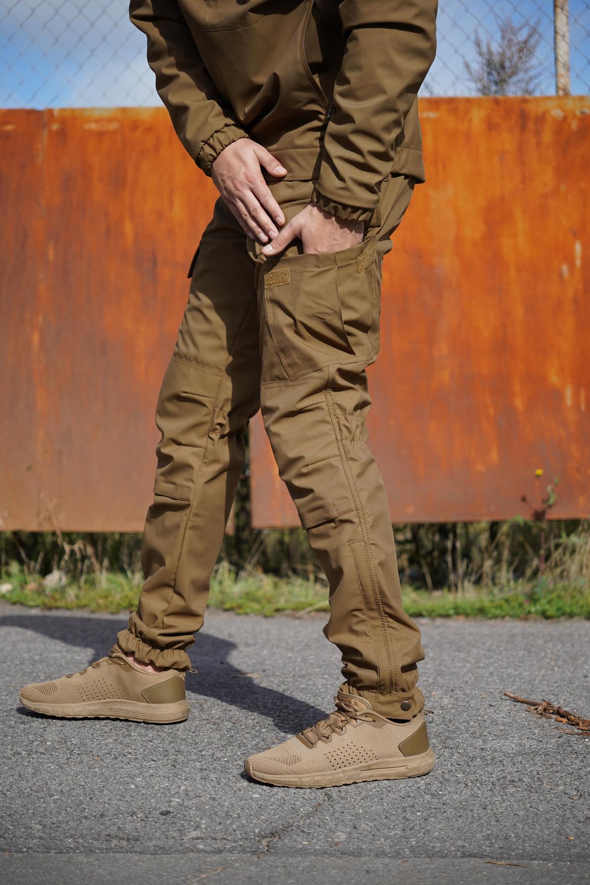 Штани оснащені чотирма кишенями для зручного зберігання необхідних речей. У нижній частині штанин передбачені блискавки-клапани, які дозволяють легко одягати взуття або забезпечити додаткову вентиляцію. Для кращої посадки та регулювання розміру в області поясу, під коліном та внизу штанів використано еластичні вставки.